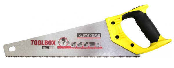 Ножовка многоцелевая (пила) 350 мм, 11 TPI, мелкий прямой закаленный зуб, точный рез 2-15091-45. Ножовка отличается мелкими прямыми зубьями, остро заточенными с двух сторон, которые обеспечивают чистый и эффективный рез по древесине твердых и мягких пород.