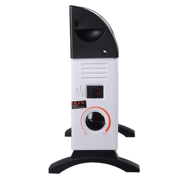 Электроконвектор OK-EU-1500C работает без вентилятора за счет конвекционного переноса тепла. Воздух свободно циркулирует внутри корпуса обогревателя: через нижние заборные решетки поступает холодный, а сверху выходит нагретый. Корпус конвектора остается комфортной температуры и не вызывает ожогов при случайном касании.