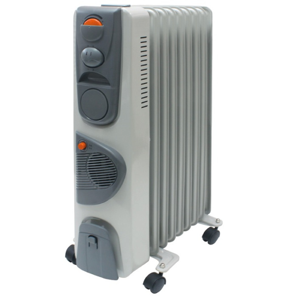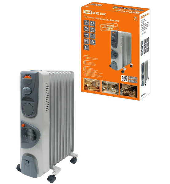 Масляный обогреватель МО-9ТВ 2000Вт 9 секций вентилятор, регулятор мощности термостат SQ2501-0912. Применяются для основного и дополнительного обогрева жилых, производственных, торговых и офисных помещений. Компактные размеры, легкость транспортировки, нагревательная секция с тремя масляными каналами, регулируемый термостат, световой индикатор работы. Поддержание заданной температуры, автоматическое отключение в случае перегрева.
