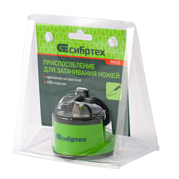 Приспособление для затачивания Сибртех 79112 с креплением на присоске используется для восстановления режущей способности ножей любого типа. Для заточки достаточно расположить нож вдоль паза и несколько раз провести лезвием между точильных камней в направлении, указанном стрелкой. Простая в применении ножеточка будет полезна в домашнем хозяйстве.