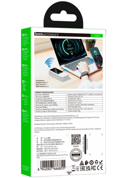 Портативный роутер HI42 в элегантном белом исполнении — это ваш персональный «карманный интернет», который превращает любую точку планеты в зону стабильного Wi Fi. Представьте: вы в поездке, на даче или в командировке, где нет проводного интернета, — а уже через минуту вокруг вас возникает собственная беспроводная сеть, к которой можно подключить смартфон, ноутбук, планшет.