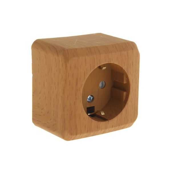 Розетка Schneider Electric Этюд бук, открытой установки, одноместная, с заземлением и шторками предназначена для применения в сетях до 250В, на ток до 16А. Шторки открываются при одновременном давлении в оба отверстия и препятствуют проникновению посторонних предметов. Они обеспечивают дополнительную безопасность в доме, где находятся дети. Изделия цвета Бук обладают уникальным рисунком, напоминающим древесный сруб. Сделано в России.