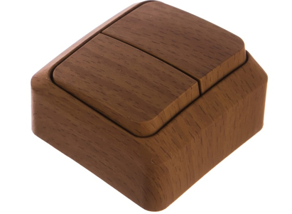 Выключатель Schneider Electric ЭТЮД (бук, открытой установки) двухклавишный предназначен для применения в сетях до 250В, на ток до 10А. Наличие подсветки делает его легко находимым при отсутствии освещения. Две клавиши позволяют управлять двумя источниками света с одной точки. Изделия цвета Бук обладают уникальным рисунком, напоминающим древесный сруб. Сделано в России.