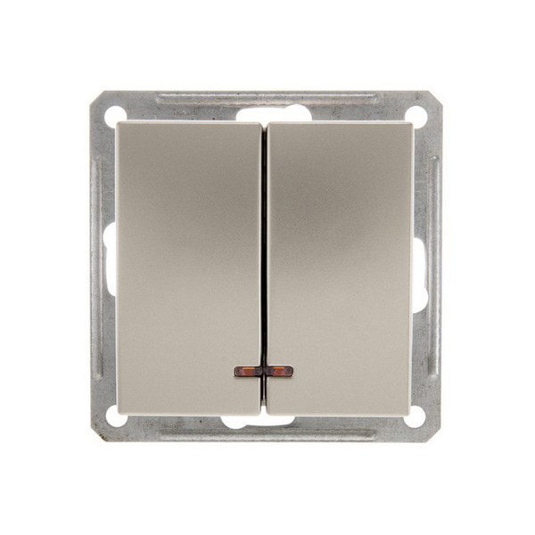 Двухклавишный выключатель с подсветкой шампань WESSEN 59 Schneider ELectric VS516-251-4-86 обладает прочностью и надежностью применения. Простое приспособление для управления несколькими линиями света с помощью двух клавиш. На стальном механизме расположена окрашенная накладка из АВС-пластика. Подсветка служит для обнаружения выключателя в темноте.