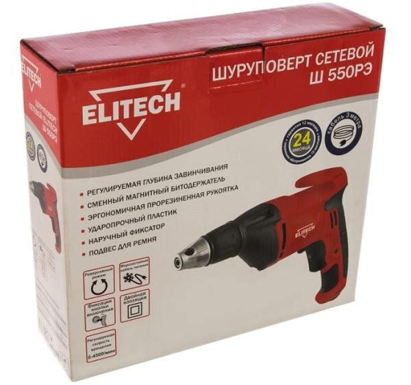 Шуруповерт Ш 550РЭ – безударный инструмент, используемый с битами. Его скорость может достигать 4500 оборотов в минуту, сочетается с регулировкой частоты вращений и одной ступенью крутящего момента. Используется для закручивания и выкручивания крепежа в гипсокартонные плиты, металл, древесину и другие материалы с регулировкой глубины завинчивания. Оснащен шестигранным патроном, что способствует легкой смене оснастки. Функция реверса служит для легкого выведения сверла из материала. Кнопка фиксации выключателя упрощает продолжительную работу оператора.
