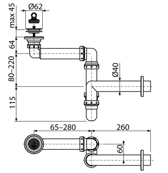 Сифон для умывальника экономящий пространство Ø63 AG2105111