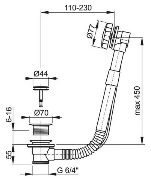 Обвязка для ванны 8004 автомат с покрытием хром подходит для большинства типов чугунных, стальных и акриловых ванн со стандартными размерами между отверстиями слива и перелива. Обвязка обеспечивает удобный выпуск воды из ванной, а также предотвращает переполнение ванны избыточным уровнем воды (излишки сливаются через верхнюю часть в канализацию). Конструкция обвязки системы автомат позволяет осуществлять выпуск воды из ванной нажатием на кнопку выпуска, а повторное нажатие на кнопку выпуска перекрывает выпуск воды.