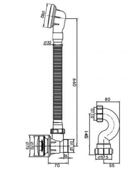 Сифон для ванны с переливом F68-2 с системой полуавтомат, позволяет открывать и закрывать слив без погружения рук в воду. Ручки сделаны из металла и покрыты хромом. Специальный рычаг (боуден-трос) передает усилие от крышки на переливе к лапке, подымающей затвор, так работает эта конструкция.