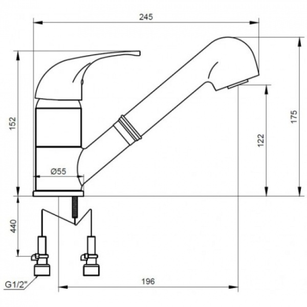 Смеситель для раковины и мойки 22066 однорычажный с вытяжной лейкой, поворотным изливом цвета хром, оснащен аэратором. Такой смеситель очень удобен в быту - вытяжная лейка позволяет вынуть смеситель из гнезда - и вот, в ваших руках уже душ со шлангом, направляйте струю воды в любых направлениях.