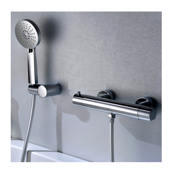 Термостатический смеситель 4010, прибор с термостатом, самостоятельно поддерживает температуру, а также постоянный напор. Модель оснащена регуляторами, на смесителе имеется кроме этого шкала температуры, где вы сами выставляете нужную температуру.