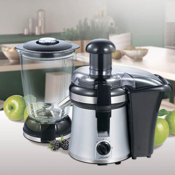 Соковыжималка с блендером Maestro MR804 - обладает современным дизайном и является универсальным прибором для изготовления сока из различных овощей и фруктов. Выделяется простотой в использовании и имеет сборку на основе качественных комплектующих.