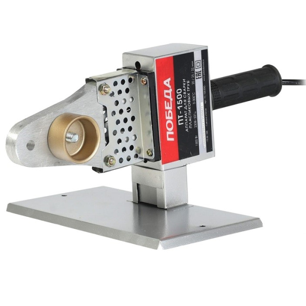 Аппарат для сварки пластиковых труб ПОБЕДА, ПТ-1500, 1500 Вт., 3 насадки, металлический кейс