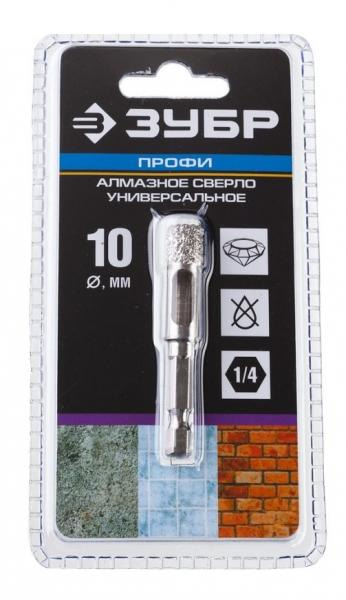 Алмазное сверло 29865-10 универсальное, сухое сверление, алмазы на вакуумной пайке, шестигранный хвостовик, d=10 мм синтез опыта и высоких технологий для превосходных результатов работы. Универсальные сверла с вакуумным алмазным нанесением применяются для эффективной резки большинства строительных и отделочных материалов, без водяного охлаждения.