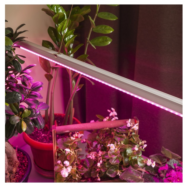 Светильник для растений FITO-9W-Т5-N предназначен для выращивания зелени, рассады пасленовых, а также для досвечивания комнатных цветов. Спектр свечения светильника фиолетовый со сдвигом в розовую часть; соотношение синего к красному - 2 к 3. Сдвиг в область красного с добавлением свечения в области дальнего красного позволяет светильнику обеспечить питание корням и листьям и предотвратить вытягивание растений.