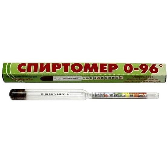 Спиртометр — это ареометр, предназначенный для определения процентого содержания спирта. С помощью этого небольшого и удобного прибора вы сможете измерить крепость практически любой жидкости, содержащей спирт. Прибор изготовлен из стекла в форме поплавка. Внутри верхней части спиртометра размещена цветная шкала проградуированная в процентах спирта по объему. В нижней части спиртометра размещен противовес из мелкой дроби. Спиртомер должен свободно плавать, не касаясь стенок сосуда.