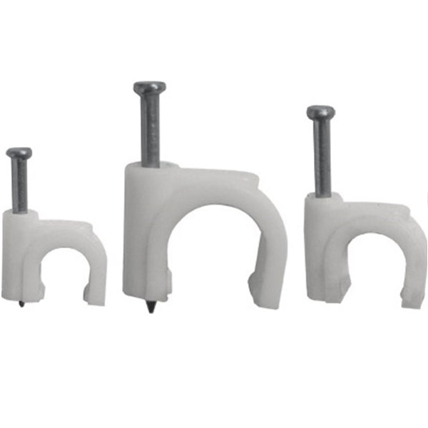 Высококачественный круглый крепеж кабеля представляет собой дугообразную пластиковую скобу диаметром 18 мм с гвоздём. Используется для мгновенного, а главное надёжного крепления проводов и кабелей к поверхностям стен, несущих конструкций и потолков.