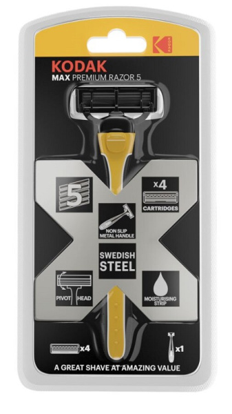 Бритвенная система 30422032 мужская 5 лезвий прорезиненная ручка 4 сменные кассеты Kodak