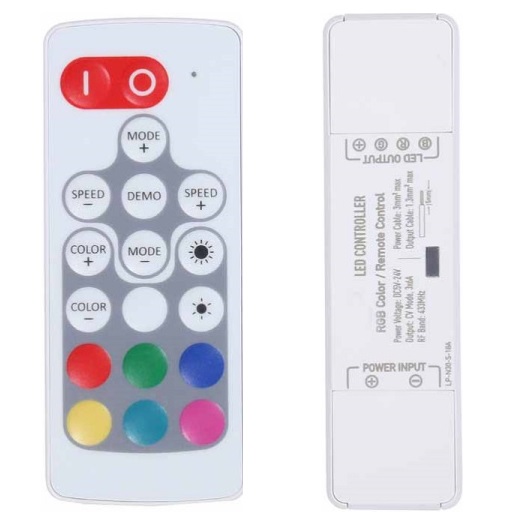 Контроллер в термоусадочной оболочке для светодиодных лент с пультом. Используется для управления цветом и яркостью одноцветных светодиодных изделий. С помощью контроллера можно подобрать и установить нужный оттенок светодиодной ленты, управлять скоростью и программой регулировки яркости.