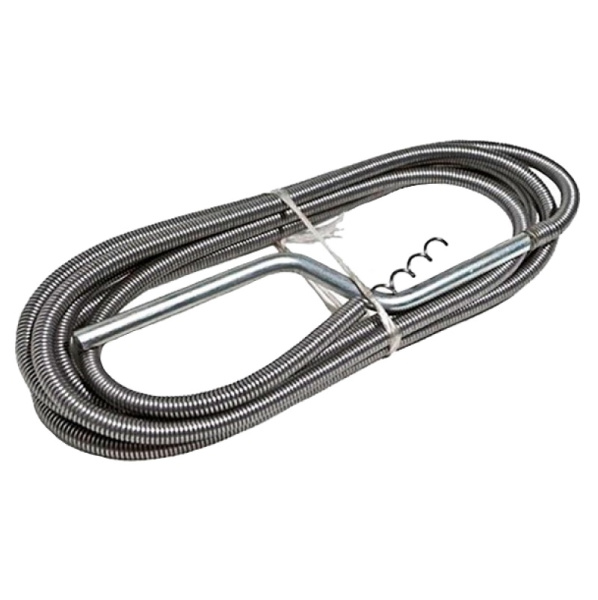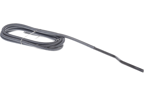 Трос изготовлен из черной пружинной проволоки диаметром 1,8мм, представляет собой полую плотно навитую спираль, с растянутым в виде буравчика концом и с ручкой в виде кривого вала. Предназначен для прочистки канализации, сточных вод и сливных систем, используется как в квартирах и частных домах, так и в промышленных зданиях. Подходит для прочистки несильных засоров от слива раковины или ванной до стояковой трубы. Диаметр троса 9мм, длина 2,5м, имеет хорошую пробивную способность, для удобства крутки троса оборудован металлическая ручка.