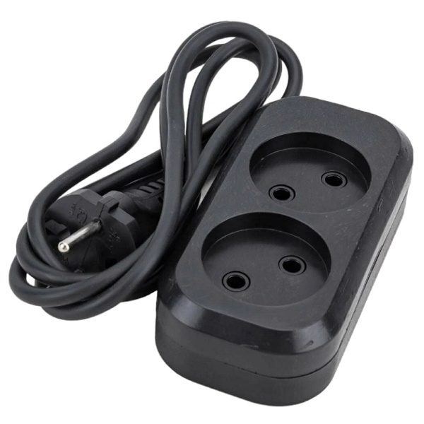 Удлинитель Е-202 ПВС 2*0,75 2гн. б/з 2м черный 2103 - функциональное и надежное в эксплуатации удлиняющее устройство. Подходит для подключения одновременно до двух электроприборов суммарной мощностью до 1,3 кВт. Применяется для подключения электроприборов и устройств различного назначения к удаленным стационарным розеткам. Удлинитель предназначен для использования в закрытых помещениях (например, дома или в офисе). Изделие можно применять как для кратковременного, так и продолжительного подключения к стационарной электросети.