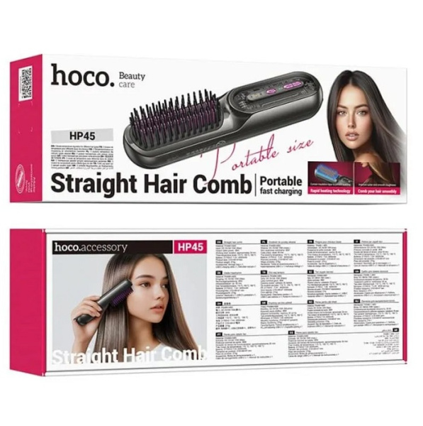 Портативная расческа выпрямитель предоставляет удобный способ для выпрямления волос не только дома, но и в дороге, в путешествиях, на работе. HP45 сочетает в себе функции утюжка, что позволяет создать профессиональный образ. Расческа-утюжок оснащена индикатором температуры, который делает настройку простым и точным процессом.