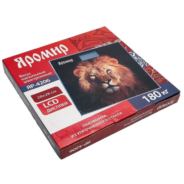 Весы ЯР-4206 – электронная модель с прочной стеклянной платформой. Максимальная нагрузка на поверхность устройства может достигать 180 кг, а точность измерения при этом составляет 100 г. Информация выводится на LCD-дисплей в различных измерительных единицах. Автоматическое включение/выключение будет экономить заряд батарейки. Размер весов составляет 28x28 сантиметров. Это позволяет их прибрать незаметно в комнате. Весы снабжены функцией измерения температуры. Два элемента питания типа ААА обеспечивают работоспособность весов долгие месяцы.