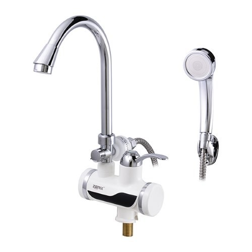 Водонагреватель на мойку 3 kW, с лейкой, с индикатором температуры ELW-08E ZERIX с картриджным девиатором, выходом для лейки, хромированное излияние. Небольшой расход потребляемой воды, быстрый нагрев, элементарный монтаж, небольшое потребление электричества.
