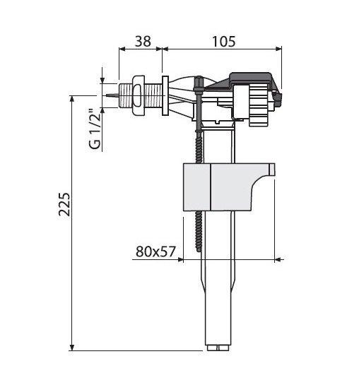 Впускной клапан А-15/-1/2". Универсальный механизм для керамического бачка, подходит для замены существующего механизма похожего назначения. Для установки на боковой стороне бачка.