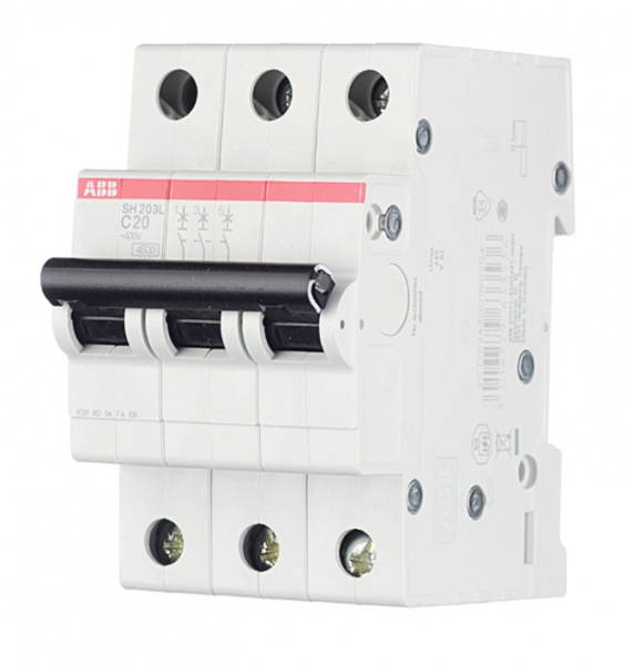 ABB SH203L Автоматический выключатель 3P 20А (С) 4,5kA предназначен для защиты цепей от перегрузок и коротких замыканий, защиты индуктивных нагрузок с низким импульсным током. Монтируется на DIN-рейку.
