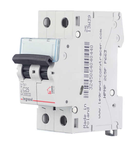Автоматический выключатель Legrand TX3 2П C 25А 6000-6кА предназначен для защиты электрических установок от перегрузок и коротких замыканий, а также для нечастых включений и отключений электрических цепей. Устанавливается только в сухих помещениях.