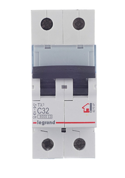 Автоматический выключатель Legrand TX3 2П C 32А 6000-6кА предназначен для защиты электрических установок от перегрузок и коротких замыканий, а также для нечастых включений и отключений электрических цепей. Устанавливается только в сухих помещениях.