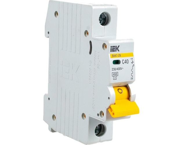 Автоматические выключатели ИЭК 1-пол 40 А предназначены для защиты распределительных и групповых цепей, имеющих различную нагрузку: – электроприборы, освещение. Рекомендуются к применению в вводно-распределительных устройствах для жилых и общественных зданий. Предназначен для защиты электрических установок от перегрузок и коротких замыканий, а также для нечастых включений и отключений электрических цепей. Устанавливается только в сухих помещениях.