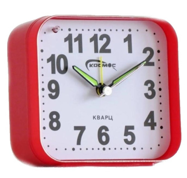Часы будильник 764 Космос электромеханический (кварцевый) будильник, габариты 85х95х40, материал корпуса пластик, механизм  кварцевый с плавным ходом, питание  батарейка АА.