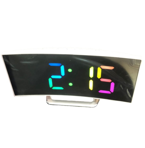 Многофункциональные часы DT6507A. Дата-время включает часовой формат, будильник и календарь. Светодиодные цифры отображаются в цвете (RGB). Задняя часть корпуса состоит из кнопок управления, батарейного отсека и разъёма питания для комплектного USB кабеля.