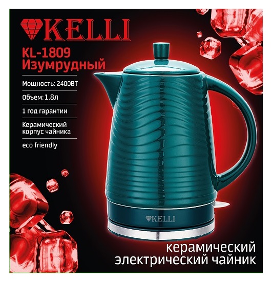 Чайник керамический 1.8л KL-1809 Изумруд KELLI