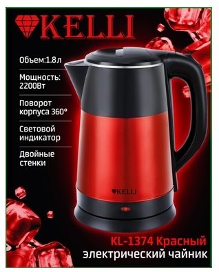 Электрический чайник KL-1374 в комбинированном корпусе (металл/пластик) с двойными стенками. Электрочайник автоматически выключается при закипании воды, а особая конструкция дна обеспечивает быстрый нагрев воды, что позволяет экономить электроэнергию.