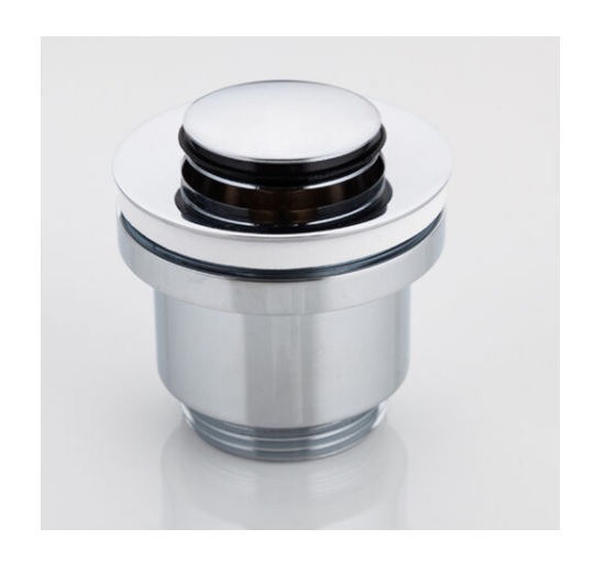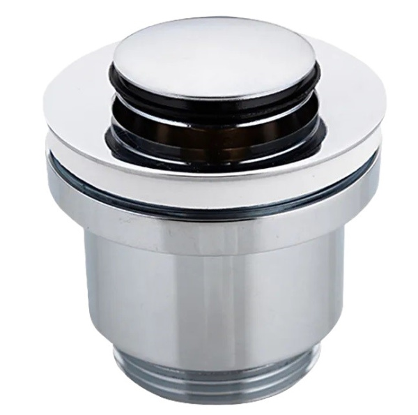 Донный клапан F61 плотно прилегает к сливу и мешает поступлению воды и неприятных запахов из канализации. Сделан из латуни и покрыт хромом, не будет ржаветь и не потеряет блеск со временем. Клапан автоматический, чтобы перекрыть отверстие достаточно легкого нажатия на поверхность корпуса. В таком механизме пробка не потеряется. Конструкция качественная и надежная.