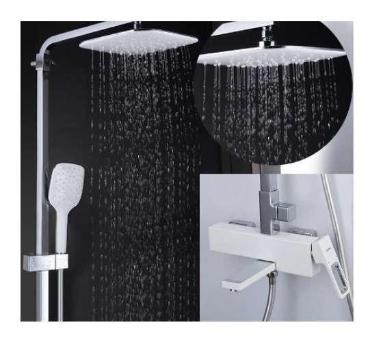 Душевая система G2417-8 со смесителем с поворотным изливом, с квадратным верхним душем и ручной лейкой.