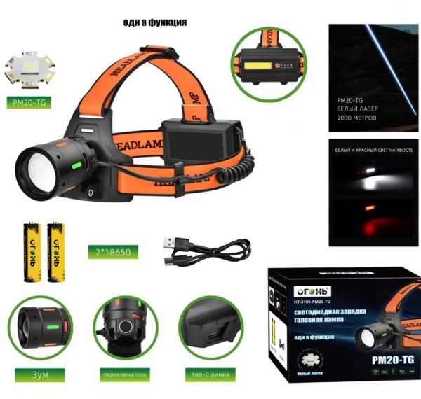 Налобный фонарь HT-3159-PM20-TG Zoom — универсальное и мощное устройство, идеально подходящее для активных путешествий, ночных работ и экстремальных условий. Этот светодиодный фонарь, способен освещать пространство на расстоянии до 2000 метров, что позволяет эффективно рассматривать объекты даже на большом расстоянии.