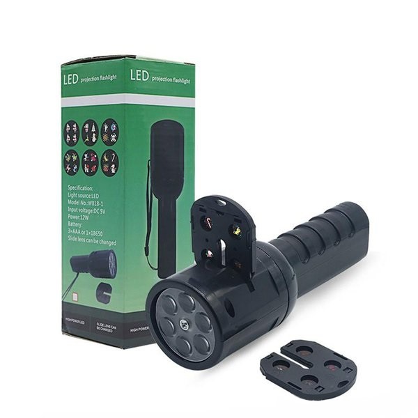 Может использоваться в качестве фонарика, а также лампы проектора. Поставляется с 4 сменными картами с различными узорами. Источник света светодиоды. По необходимости можно переключить с фонарика на проекционную лампу.