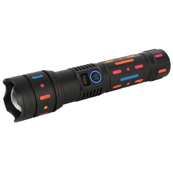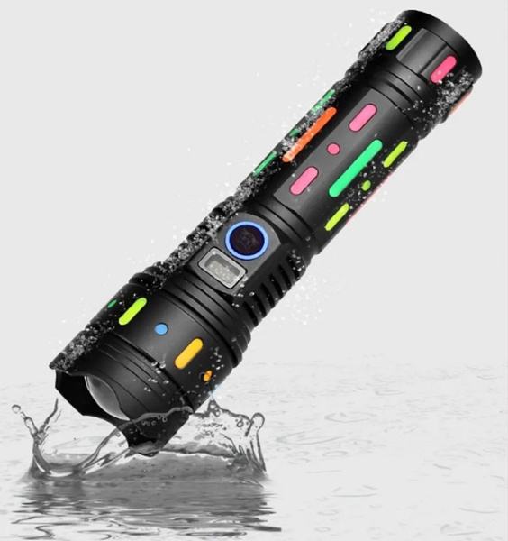 Сверхяркий и мощный фонарь с индикацией подсветки. Корпус выполнен из алюминиевого сплава, износостойкий, противоскользящий, устойчивый к падению. Светит такой мощный фонарь на аккумуляторной батарее типа 32850/10000mAh.