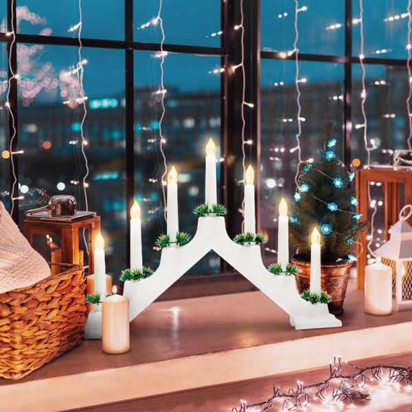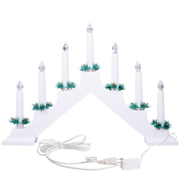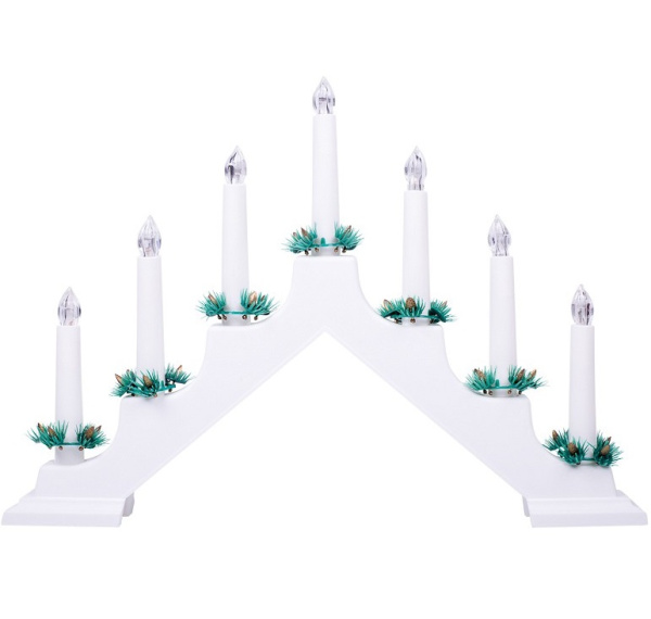 Новогодняя горка с 7 свечками — великолепное дополнение к оформлению праздничного стола или декоративной композиции, а также отличный подарок для родных и друзей на любой из зимних праздников. 7 экономичных ярких светодиодов излучают теплый белый свет.