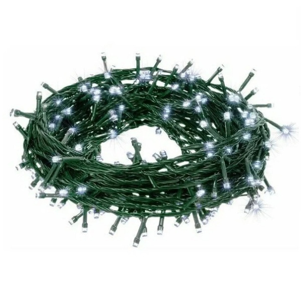 Светодиодная гирлянда холодный свет 100 ламп зеленый шнур 5м.