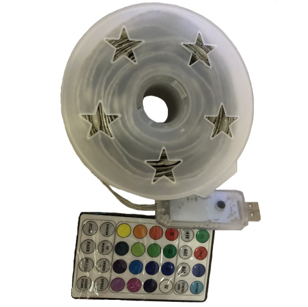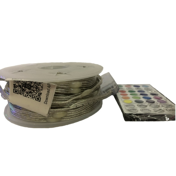 Гирлянда RGB для применения внутри помещений степень защиты IP20, от сети 230V. Выполнена в виде линии длиной 5 метров. Настраивается пультом из комплекта.