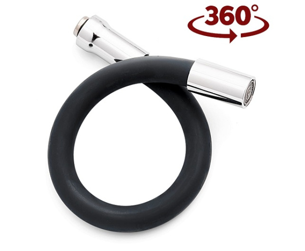 Гибкий излив для кухонных смесителей оснащен присоединительной гайкой 3/4" и аэратором, формирующим мягкую и ровную струю воды, а также позволяющим экономить её расход. Изготовлен из нержавеющей стали, АБС пластика и силикона. Совместим с любыми импортными смесителями. За счет гибкости излива, без труда можно вымыть объемную посуду, дотянуться до труднодоступных мест и любого содержимого мойки.