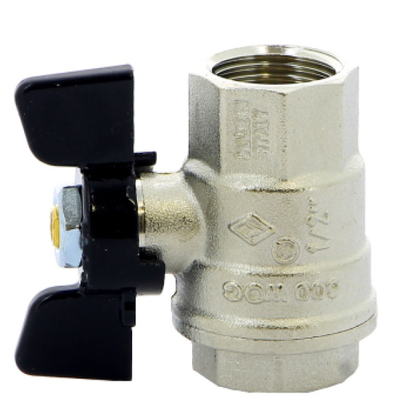 Шаровой кран Bugatti 1" полнопроходной с ручкой-«бабочкой» предназначен для использования в качестве запорной арматуры на трубопроводах систем водоснабжения и отопления. Кран является полнопроходным. Средний срок службы изделия составляет 50 лет. Полнопроходной шаровой кран Bugatti с резьбой гайка/штуцер снабжён алюминиевой ручкой-«бабочкой» с покрытием чёрного цвета. Материал уплотнения шара: тефлон.