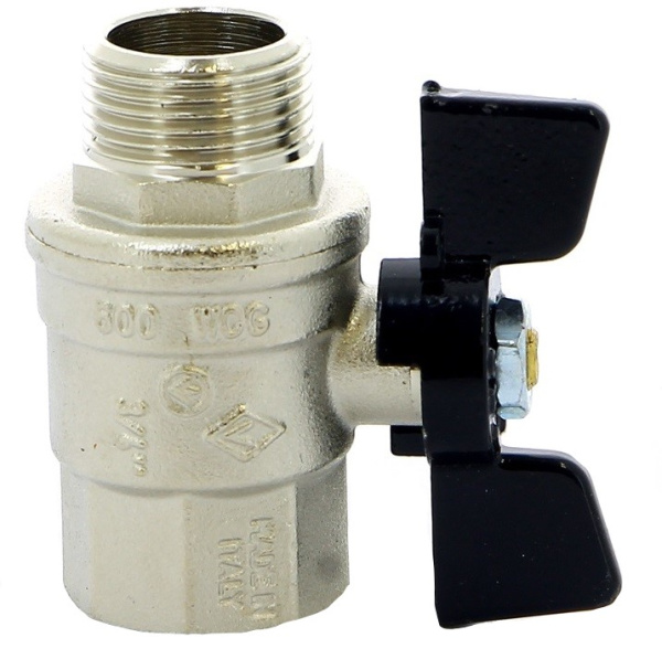 Кран шаровый Bugatti бабочка 3/4" усиленный применяется в качестве запорной арматуры в системах горячего и холодного водоснабжения, включая системы с питьевой водой, отопления, транспортировки сжатого воздуха и углеводородов, нефтепродуктов, на технологических трубопроводах, транспортирующих жидкости и газы, не агрессивных к материалам крана. Относится к запорной арматуре и не предназначен для регулирования потока. Для присоединения к трубопроводу применяется наружная/внутренняя резьба HB. Для перекрытия потока используется ручка – бабочка из алюминия с покрытием из эпоксидной эмали черного цвета.
