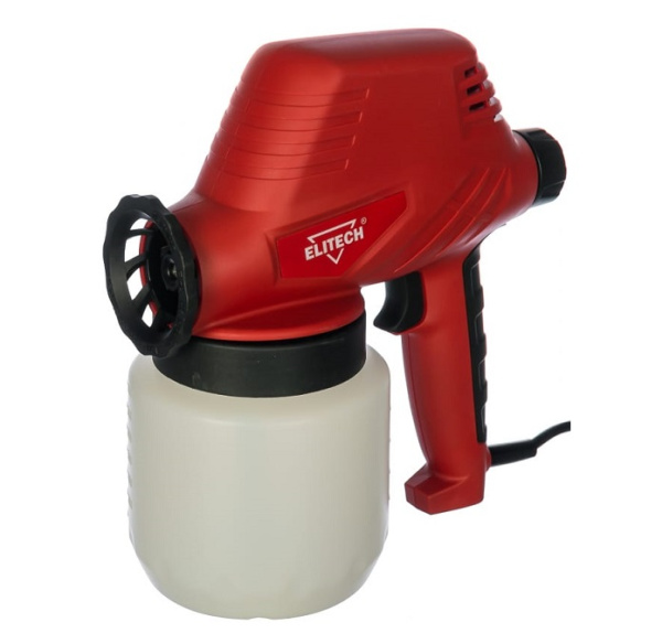 Краскопульт Elitech КЭ 110С подойдет для распыления различных видов материалов с целью их быстрого и равномерного нанесения на поверхность. Вы можете использовать с ним лаки, эмали, краски, грунтовки, антисептики. Одна модель способна покрыть большинство потребностей пользователей. Максимальная вязкость жидкости – 60 DIN. В Elitech КЭ 110С установлен бак на 800 мл из прочного пластика. В него заливается жидкость для нанесения и происходит соединение с основным элементом. Максимальная производительность – 300 грамм за минуту, подачу можно отрегулировать.