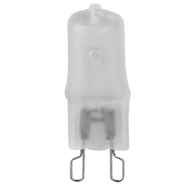 В баллон лампы добавлен буферный газ: пары галогенов (брома или йода). Это повышает время жизни лампы до 2000—4000 часов, и позволяет повысить температуру спирали. При этом рабочая температура спирали составляет примерно 3000 К. Эффективность галогенных ламп может достигать 28 лм/Вт.