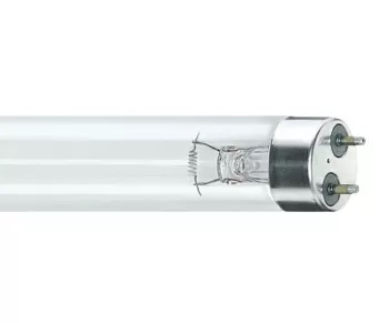 Бактерицидная лампа GERMICID 8W G5 мощностью 8 Вт. Люминесцентная лампа для уничтожения микроорганизмов и бактерий. Сконструирована без использования озона. Излучает УФ-радиацию. Используется только в специально предназначенных для такой лампы светильниках. Применяется для обеззараживания воды, воздуха и поверхностей в больницах, офисах, лабораториях, в вентиляции.